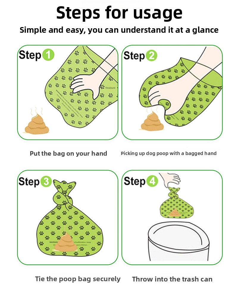 | Color | 10pcs Footprint Bags Random Color, 10pcs Degradable Bags Green, 10pcs Blue Bone Shells |