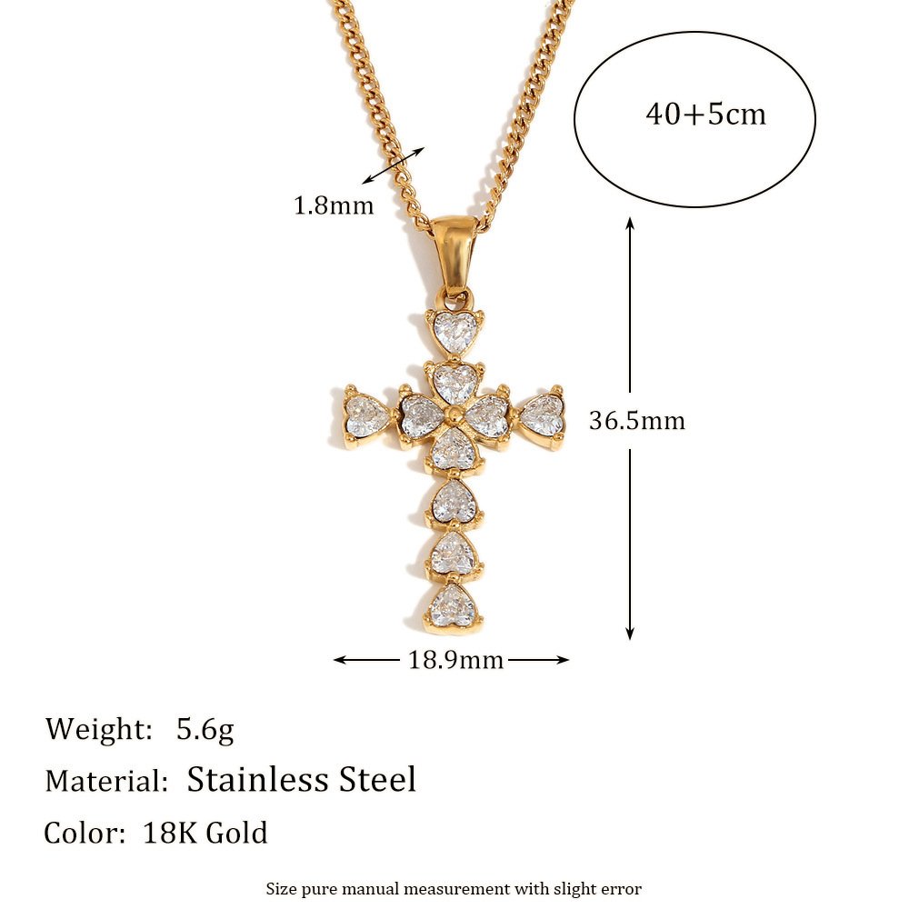 Stainless Steel 18K Gold Plated Water Drop Heart-shaped Cross Pendant Necklace