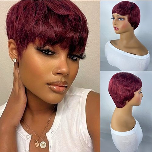 Short And Straight, Elf, Human Hair Non-toxic Wig, Burgundy, Short And Elf Haircut, Ladies Wig, Applicable To The Whole Scene.