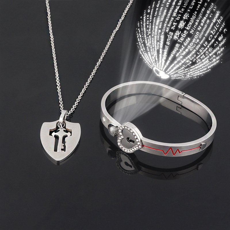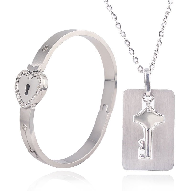 Fashion Jewelry Titanium Steel Couple Love Lock, Bracelet, Key Set, Necklace